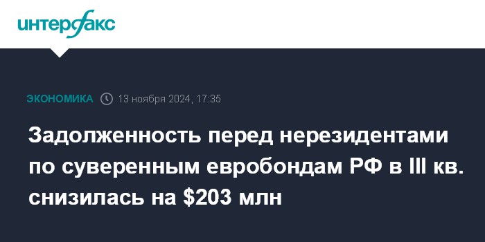 Задолженность перед нерезидентами по суверенным евробондам РФ в III кв. снизилась на $203 млн