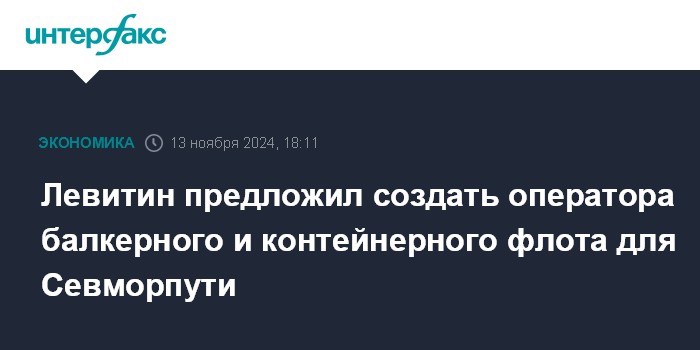 Москва. 13 ноября. INTERFAX.RU - Создание оператора для перевозки балкерных и контейнерных грузов необходимо для развития Севморпути на данном этапе, считает советник президента РФ - спецпредставитель по международному сотрудничеству в сфере транспорта Игорь Левитин.