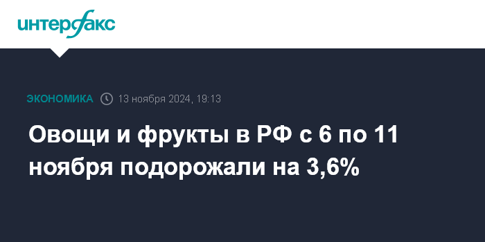 Овощи и фрукты в РФ с 6 по 11 ноября подорожали на 3,6%