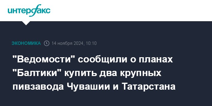 "Ведомости" сообщили о планах "Балтики" купить два крупных пивзавода Чувашии и Татарстана