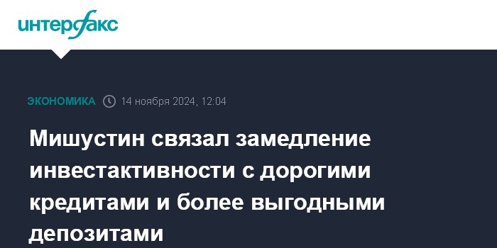 Москва. 14 ноября. INTERFAX.RU - Рост инвестиций в основной капитал в РФ за I полугодие 2024 года превысил 10%, но в последнее время инвестиционная активность замедляется из-за дорого заемного капитала и более выгодных депозитов, заявил премьер-министр РФ Михаил Мишустин на совещании по экономическим вопросам.
