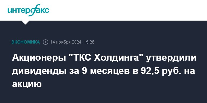 Акционеры "ТКС Холдинга" утвердили дивиденды за 9 месяцев в 92,5 руб. на акцию