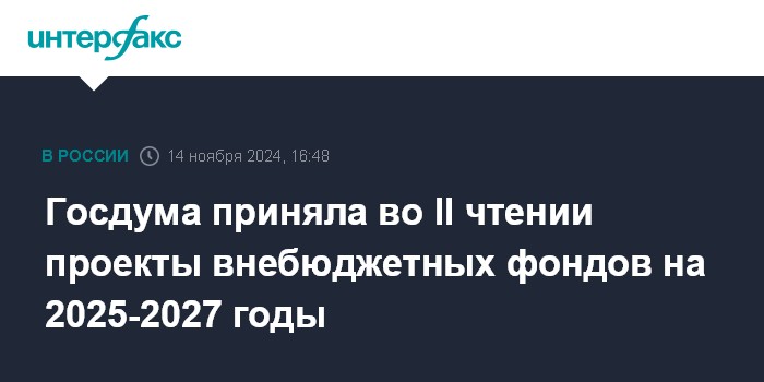 Госдума приняла во II чтении проекты внебюджетных фондов на 2025-2027 годы