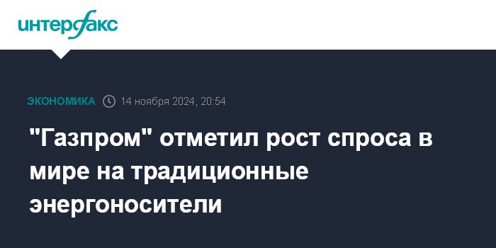 Москва. 14 ноября. INTERFAX.RU - Главным итогом 2024 года в мировой энергетике стало продолжение роста спроса на традиционные энергоносители на фоне геополитической нестабильности и большего внимания к энергетической безопасности, сообщает "Газпром".