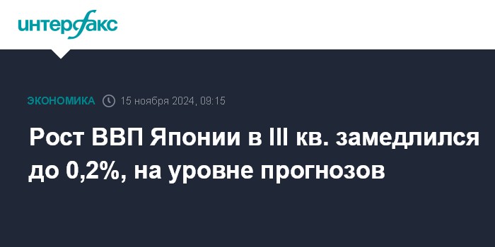 Рост ВВП Японии в III кв. замедлился до 0,2%, на уровне прогнозов