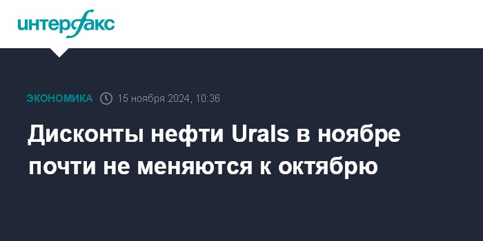 Дисконты нефти Urals в ноябре почти не меняются к октябрю