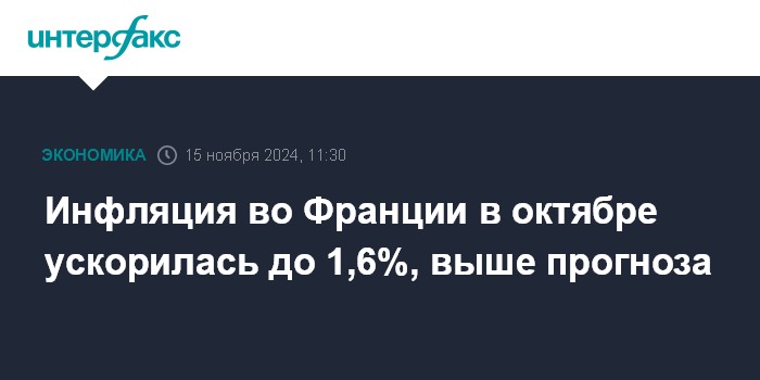Инфляция во Франции в октябре ускорилась до 1,6%, выше прогноза