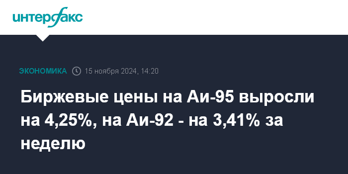 Биржевые цены на Аи-95 выросли на 4,25%, на Аи-92 - на 3,41% за неделю