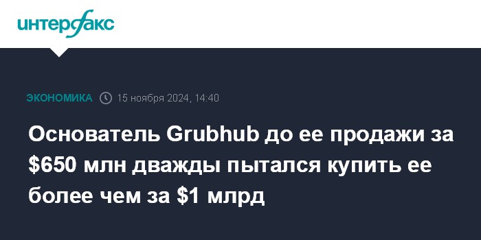Основатель Grubhub до ее продажи за $650 млн дважды пытался купить ее более чем за $1 млрд