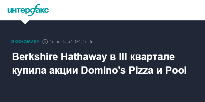 Berkshire Hathaway в III квартале купила акции Domino's Pizza и Pool