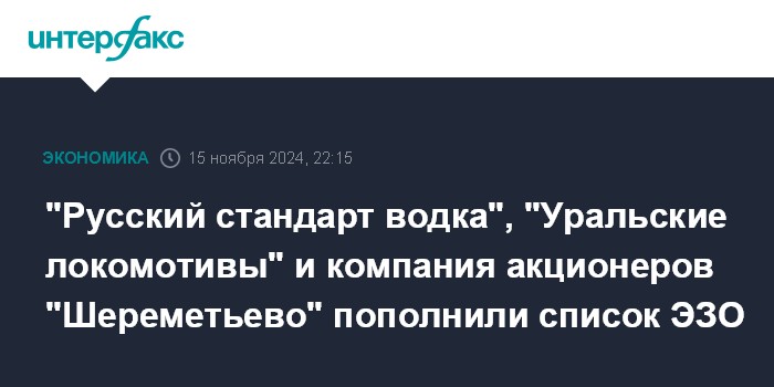 "Русский стандарт водка", "Уральские локомотивы" и компания акционеров "Шереметьево" пополнили список ЭЗО