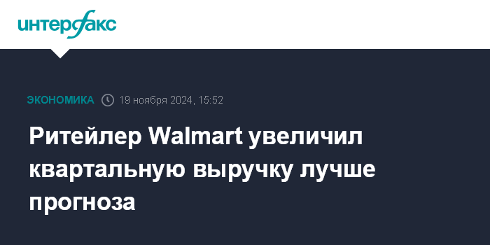 Москва. 19 ноября. INTERFAX.RU - Walmart Inc., крупнейшая в США компания розничной торговли, в третьем квартале 2025 финансового года увеличила выручку на 5,5%, что оказалось лучше прогноза экспертов.