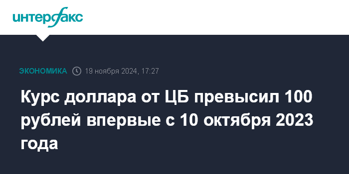 Курс доллара от ЦБ превысил 100 рублей впервые с 10 октября 2023 года