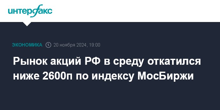 Рынок акций РФ в среду откатился ниже 2600п по индексу МосБиржи