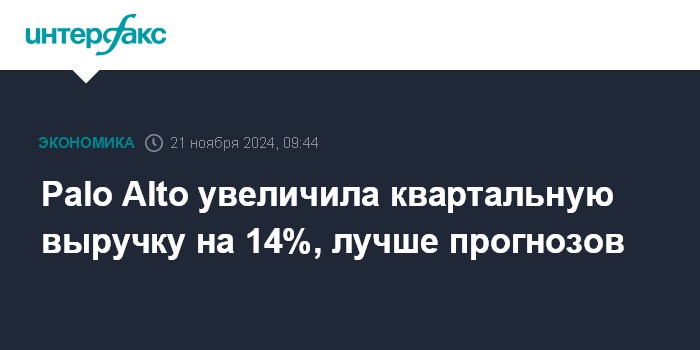Palo Alto увеличила квартальную выручку на 14%, лучше прогнозов