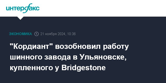 Как сообщалось, Bridgestone остановил производство шин в Ульяновске в марте 2022 года. В декабре 2023 года японский концерн продал свои шинные активы в РФ холдинговой компании S8 Capital, а в октябре 2024 года консолидированные шинные активы "Кордиант" были приобретены "Севергрупп", осуществляющей деятельность по управлению инвестициями в интересах Алексея Мордашова.