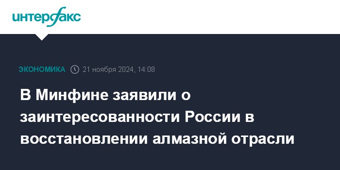 В Минфине заявили о заинтересованности России в восстановлении алмазной отрасли