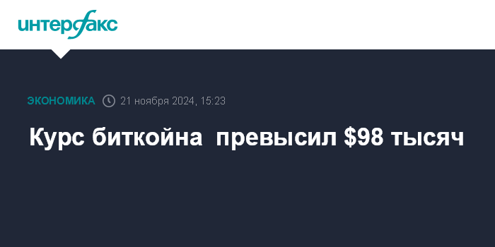 Курс биткойна превысил $98 тысяч