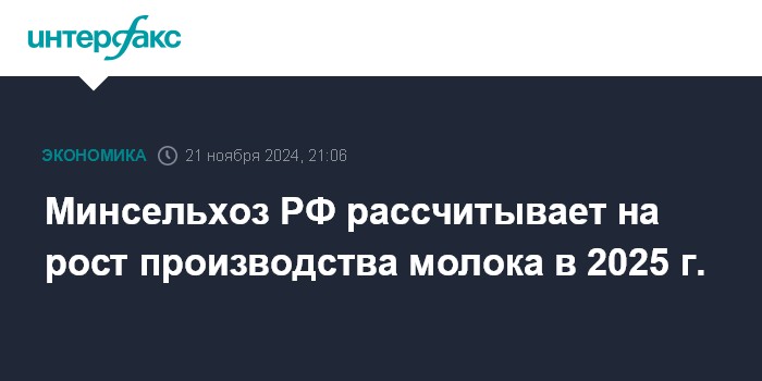 Минсельхоз РФ рассчитывает на рост производства молока в 2025 г.
