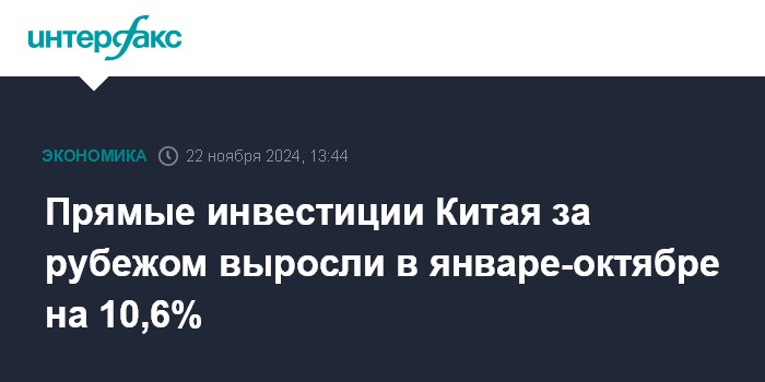 Прямые инвестиции Китая за рубежом выросли в январе-октябре на 10,6%