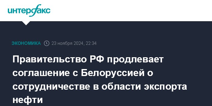Правительство РФ продлевает соглашение с Белоруссией о сотрудничестве в области экспорта нефти