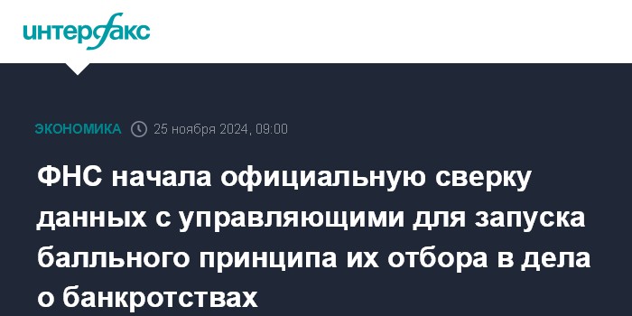 ФНС начала официальную сверку данных с управляющими для запуска балльного принципа их отбора в дела о банкротствах