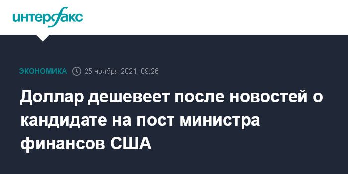Доллар дешевеет после новостей о кандидате на пост министра финансов США