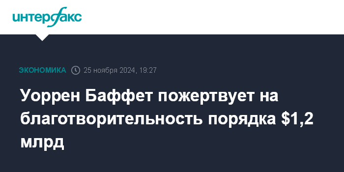 Бизнесмен с 2006 года ежегодно жертвует крупные суммы на благотворительность в виде акций Berkshire. Ранее он пообещал отдать на эти цели 99% состояния.
