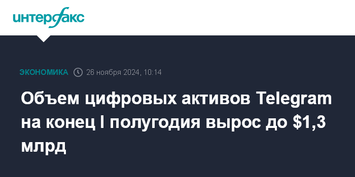 Объем цифровых активов Telegram на конец I полугодия вырос до $1,3 млрд