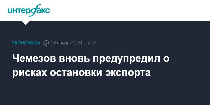 Москва. 26 ноября. INTERFAX.RU - Глава "Ростеха" Сергей Чемезов снова предупредил о рисках остановки экспорта продукции, в первую очередь, с длинным циклом производства, при текущей денежно-кредитной политике Банка России. Он заявил об этом на международном форуме Финансового университета