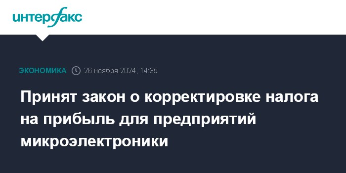 Принят закон о корректировке налога на прибыль для предприятий микроэлектроники