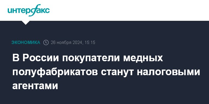 В России покупатели медных полуфабрикатов станут налоговыми агентами