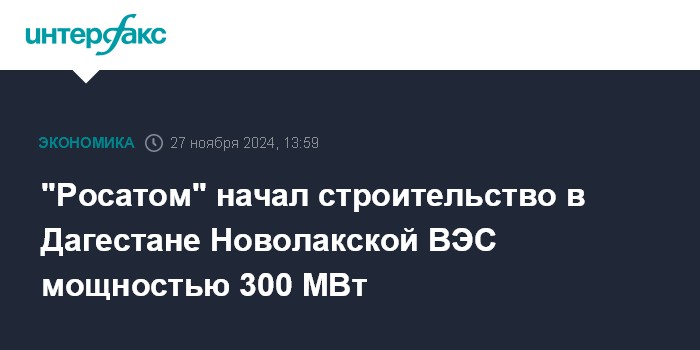 "Росатом" начал строительство в Дагестане Новолакской ВЭС мощностью 300 МВт