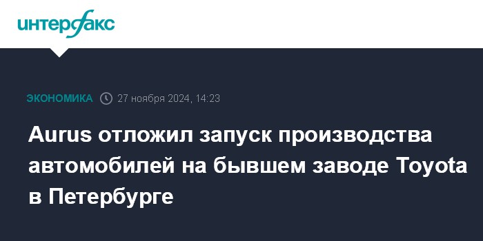 Москва. 27 ноября. INTERFAX.RU - Российский производитель люксовых автомобилей Aurus отложил запуск производства на мощностях бывшего завода Toyota в Санкт-Петербурге.