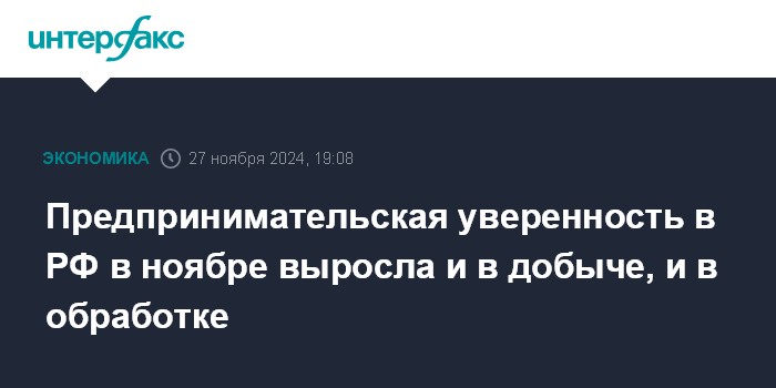 Предпринимательская уверенность в РФ в ноябре выросла и в добыче, и в обработке