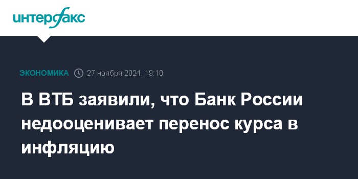 В ВТБ заявили, что Банк России недооценивает перенос курса в инфляцию