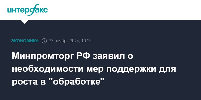 Минпромторг РФ заявил о необходимости мер поддержки для роста в "обработке"