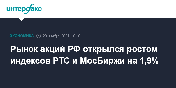 Рынок акций РФ открылся ростом индексов РТС и МосБиржи на 1,9%