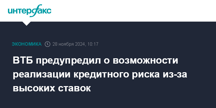 ВТБ предупредил о возможности реализации кредитного риска из-за высоких ставок