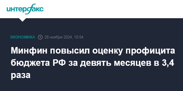 Минфин повысил оценку профицита бюджета РФ за девять месяцев в 3,4 раза