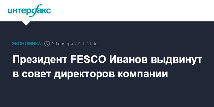 Президент FESCO Иванов выдвинут в совет директоров компании