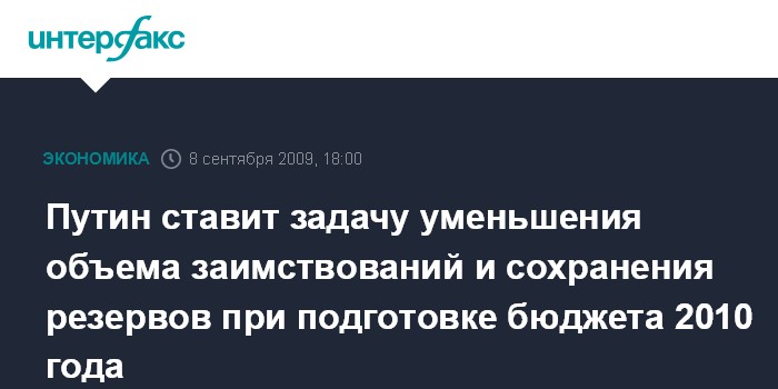 Путин ставит задачу уменьшения объема заимствований и сохранения резервов при подготовке бюджета 2010 года