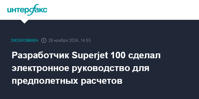 Разработчик Superjet 100 сделал электронное руководство для предполетных расчетов