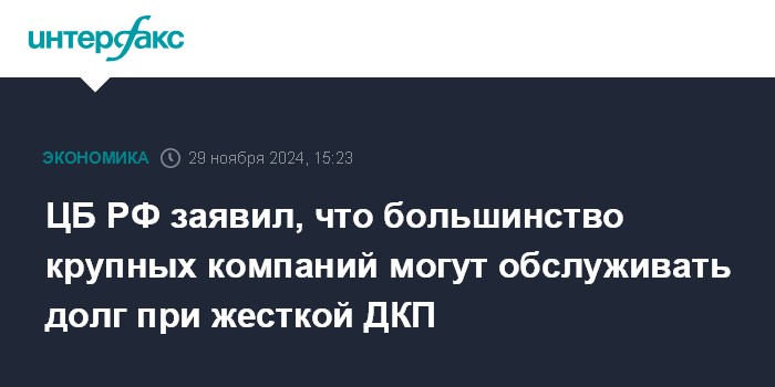 ЦБ РФ заявил, что большинство крупных компаний могут обслуживать долг при жесткой ДКП