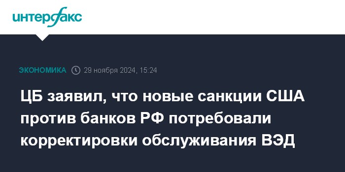 ЦБ заявил, что новые санкции США против банков РФ потребовали корректировки обслуживания ВЭД