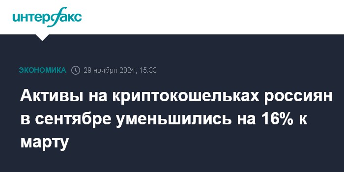 Активы на криптокошельках россиян в сентябре уменьшились на 16% к марту