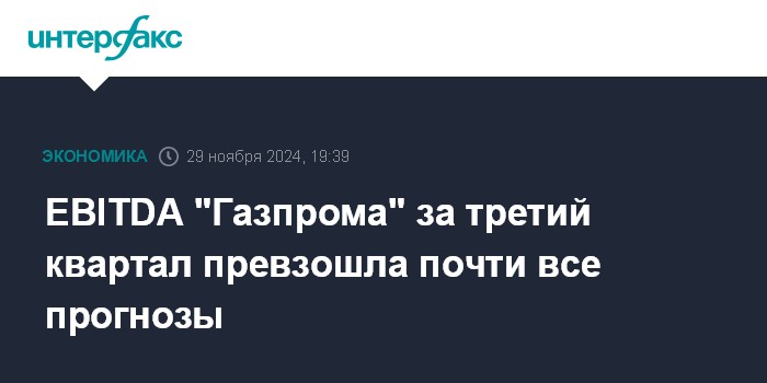 EBITDA "Газпрома" за третий квартал превзошла почти все прогнозы