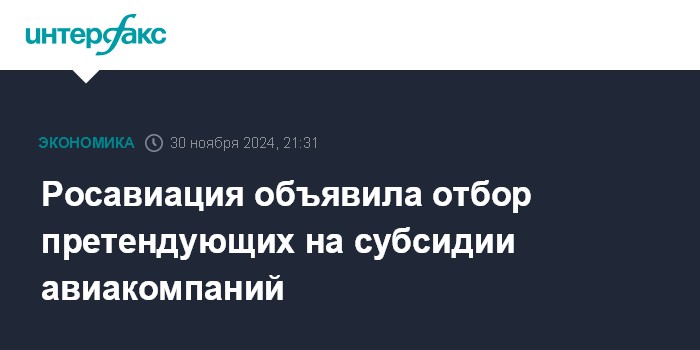 Москва. 30 ноября. INTERFAX.RU - Росавиация объявила отбор перевозчиков для участия в программах субсидирования рейсов по социально-значимым маршрутам в обход Москвы, а также на Дальний Восток и в Калининград в 2025 году.