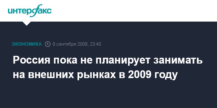 Москва. 8 сентября. ИНТЕРФАКС - Россия пока не планирует осуществлять заимствования на внешних рынках в 2009 году, заявил вице-премьер - министр финансов Алексей Кудрин.
