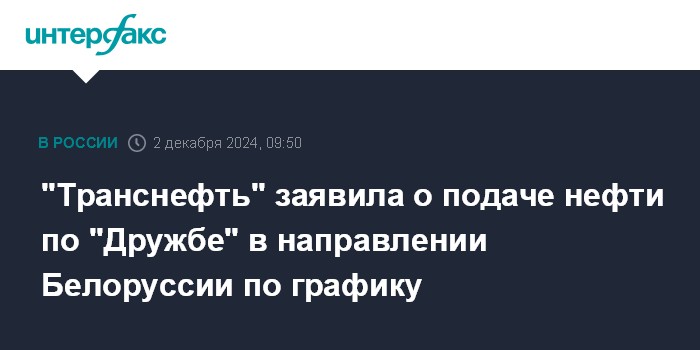 "Транснефть" заявила о подаче нефти по "Дружбе" в направлении Белоруссии по графику